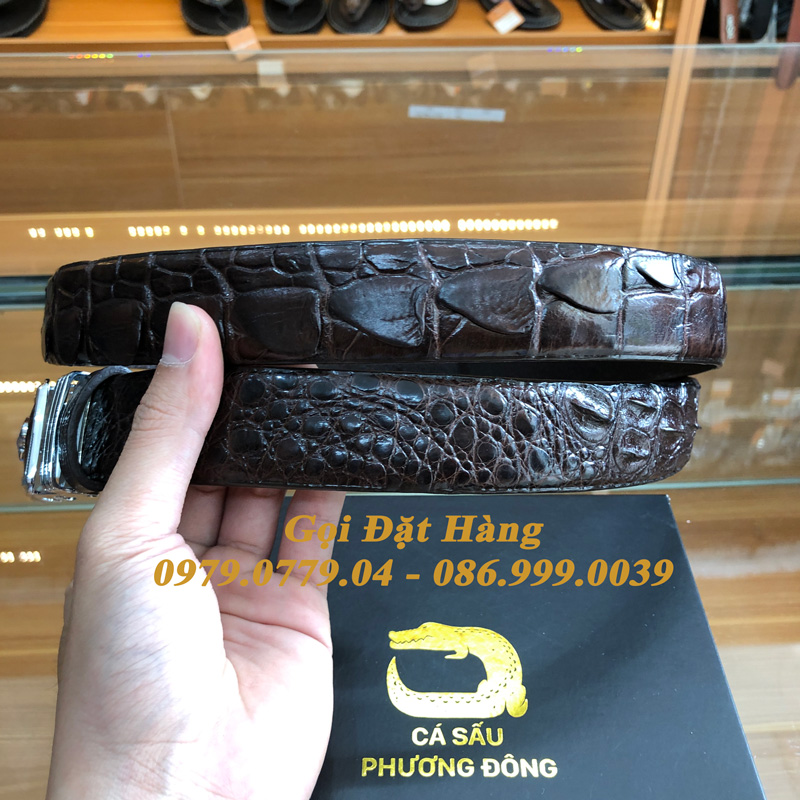 Sản phẩm thắt lưng cá sấu liền là sản phẩm được cắt nguyên con từ trên xuống thường có độ bền rất cao và thể hiện đầy đủ sự tinh tế của lớp da cá sấu trên dây. Mang vẻ đẹp đặc trưng của cá sấu thể hiện sự mạnh mẽ, cá tính người đàn ông.