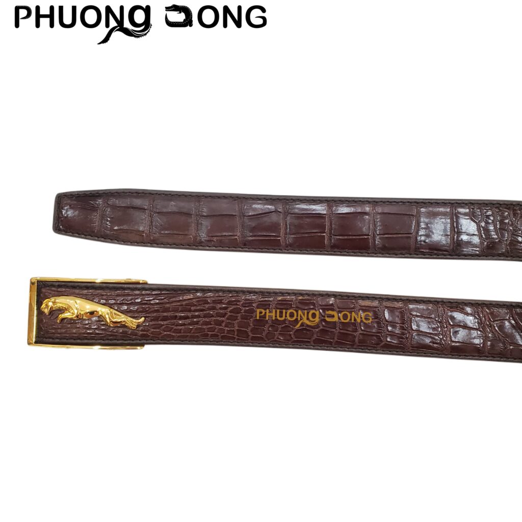 - Thắt lưng da cá sấu liền được thiết kế 100% da cá sấu thật đem lại sự sang trọng, đẳng cấp. Bề mặt thắt lưng được tạo từ phần gù cổ trải dài xuống đuôi của cá sấu tạo cảm giác chắc chắn , mạnh mẽ và cá tính cho người dùng